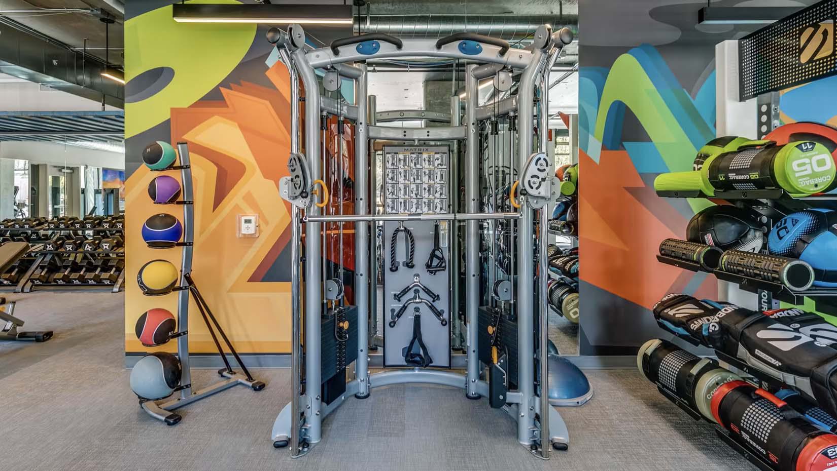 A sunlit fitness space outfitted with high-performance cardio machines.