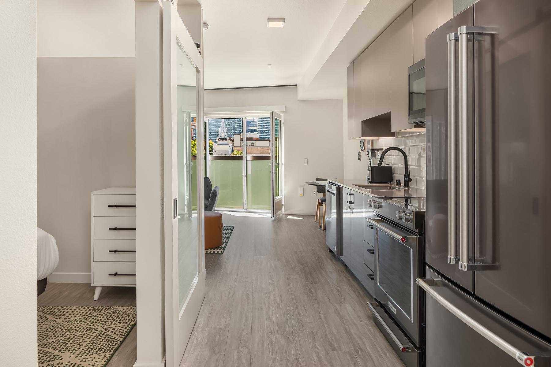 From sleek kitchen finishes to Seattle skyline views, this furnished layout maximizes light, flow, and style.
